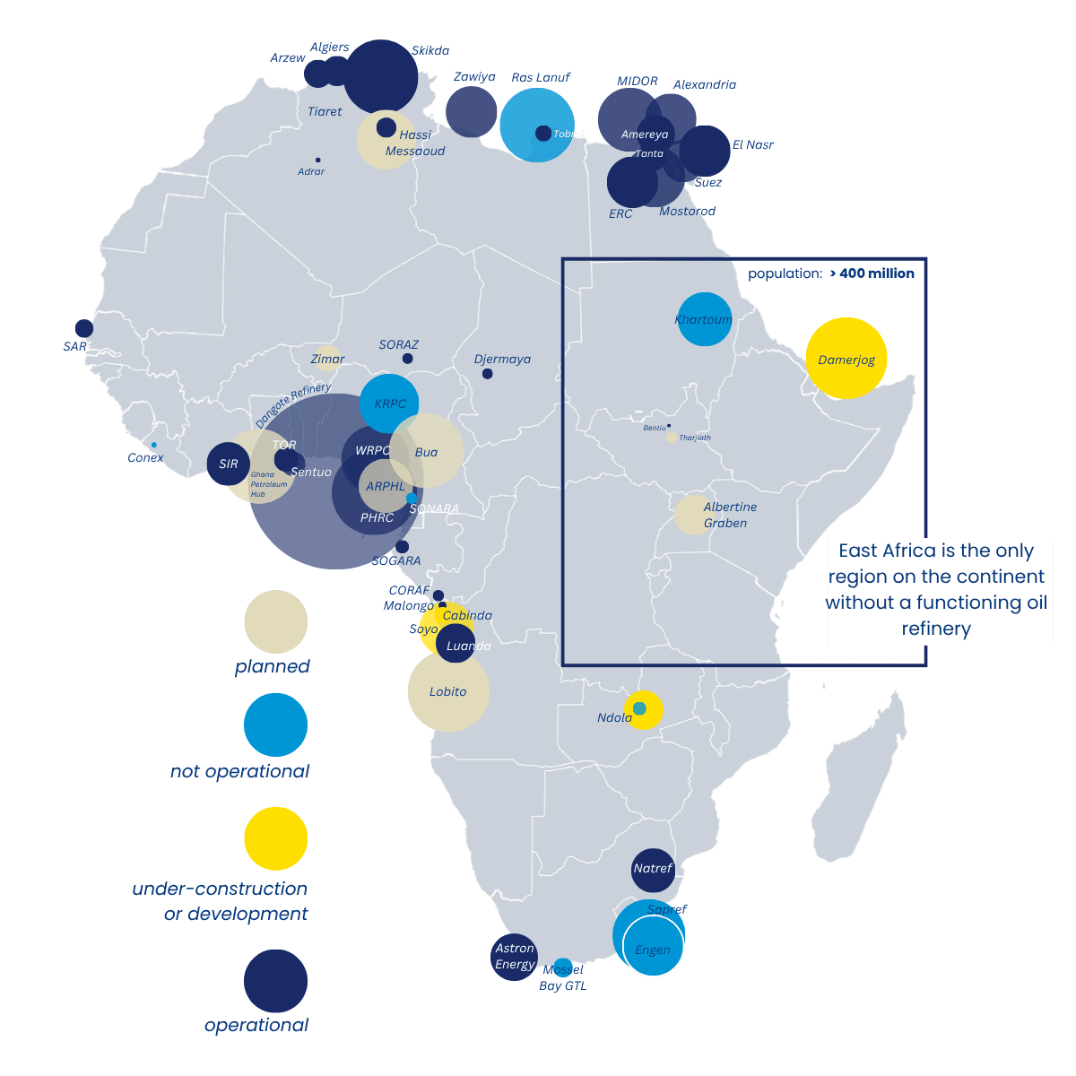 - Recent shocks have shown that without storage, buffers and efficient distribution systems, gains in transport efficiency do not translate into lower costs or greater stability. This gap is acute: no African country meets the IEA’s 90-day emergency oil stock requirement, while food storage capacity across the continent covers less than 30% of annual production. Expanding storage capacity, building strategic reserves, and integrating rail and pipeline infrastructure into supply chains are therefore critical to reducing vulnerability in both food and fuel systems.